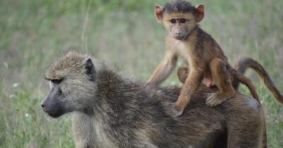 The most common species, Olive Baboons are named for their grey-green fur.